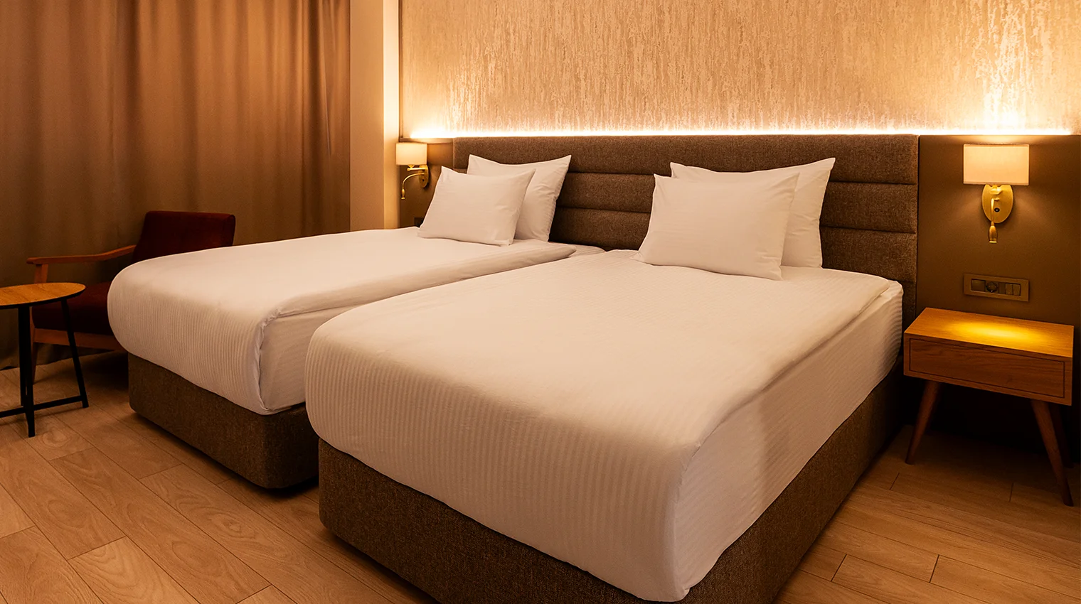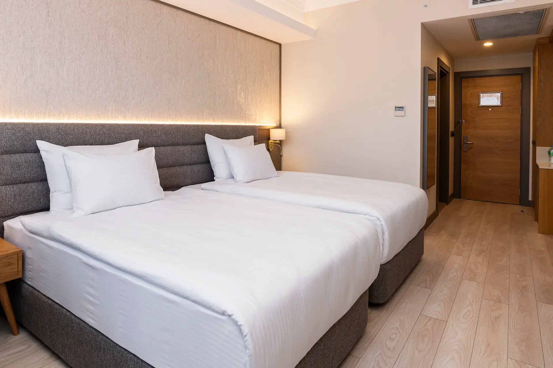 İş ve tatil amaçlı konaklamalar için ideal olan Standart Twin Odalarımız, havuz ve dağ manzarası seçenekleriyle sizi huzur dolu bir atmosfere davet ediyor. Modern donanımlarıyla ihtiyaçlarınıza uygun bir konaklama deneyimi sunuyoruz.